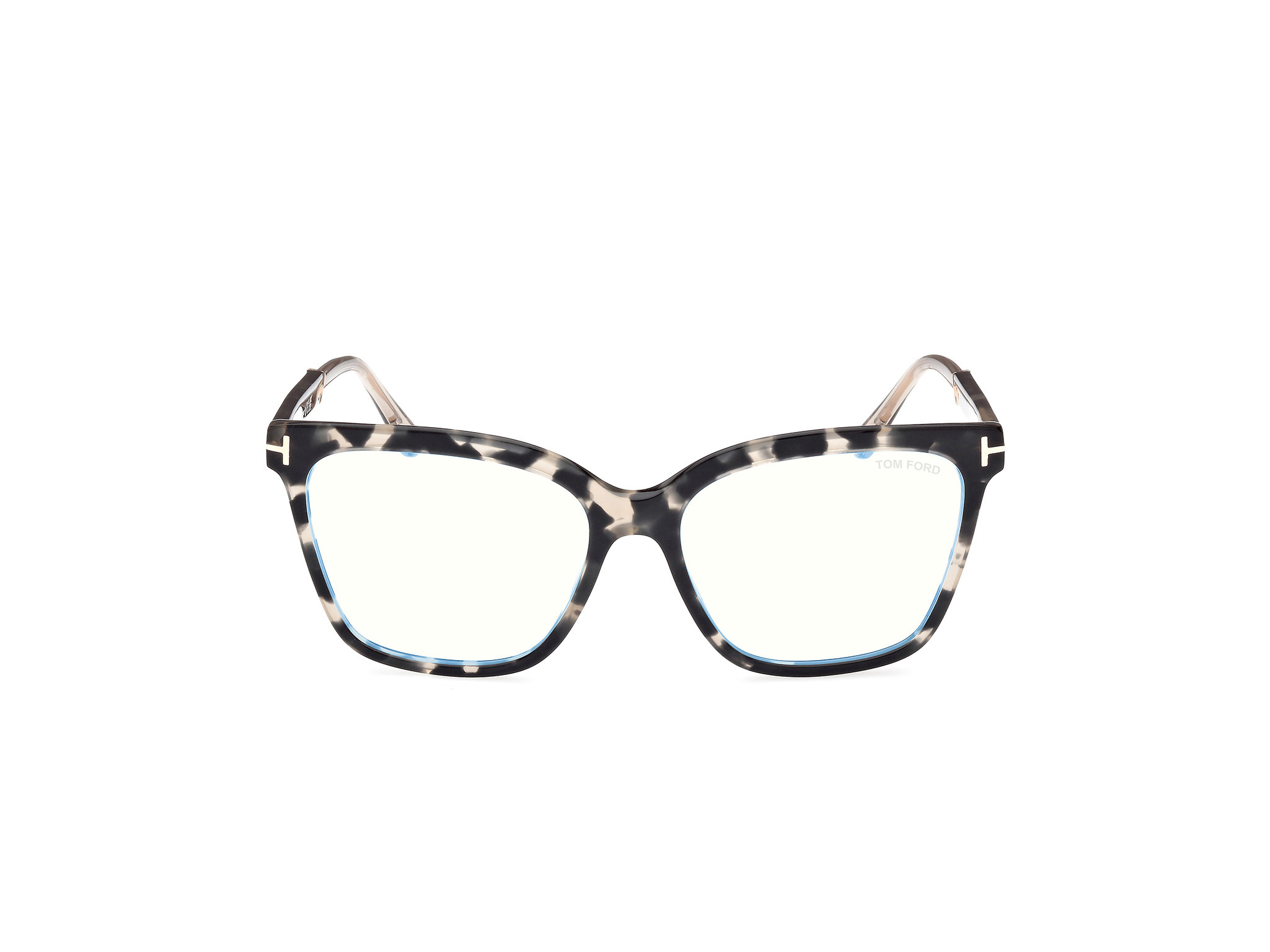 052 Shiny Dark Havana, Shiny Rose Gold, "T" Logo / Blue Block Lenses